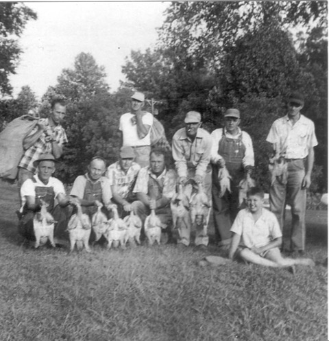 Successful turtle hunt with Tucker, Reese, Westbrook, Spence and Collett family members - 1950s. Turtle “boils” were often held on the Fourth of July in Milton communities, especially in Crabapple and Fields Crossroads. Turtles were plentiful along the banks of the Cooper Sandy and Chicken Creeks. The turtles were boiled in large cast iron pots. On Mondays the pots were used for washing clothes.