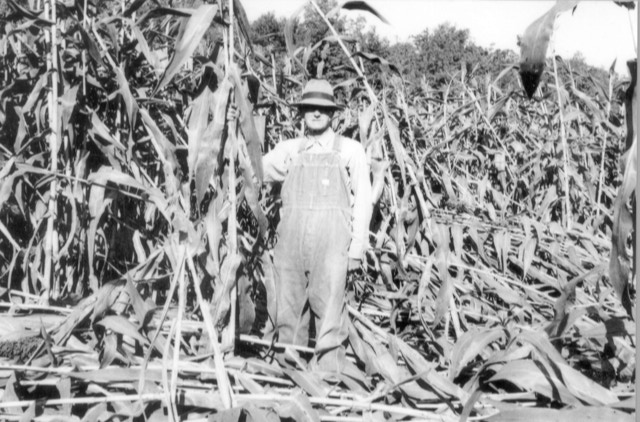 Rollin Tucker standing in his cornfield on Freemanville Road near Summit Road. Mr. Tucker often peddled his produce in Alpharetta and Roswell. The Tucker farm house was restored from 1979 - 1984 by Robbie Richter and is now owned by James & Linda Farris.