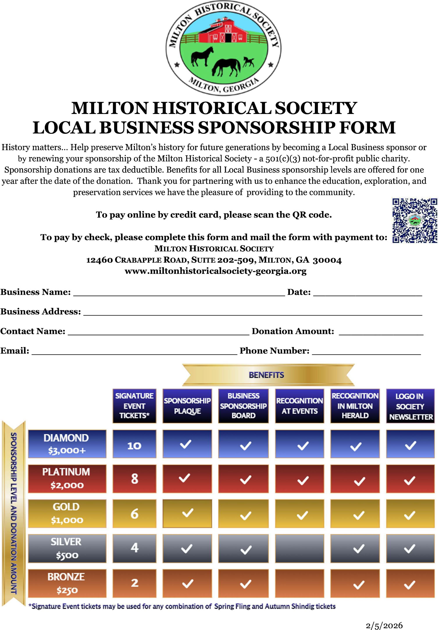 1. Download and print a Local Business Sponsorship form, fill it out and mail it with your check to: